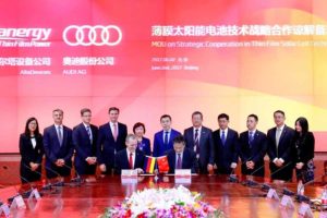 אוטוניוז, 24.08.2017 – אודי תשלים עד סוף 2017 בניית דגם קונספט ראשון של מכונית חשמלית עם יכולת הארכת טווח באמצעות שימוש בתאים סולאריים. הפרויקט מבוצע בשיתוף עם Hanergy, יצרנית סינית של תאים סולאריים באמצעות חברת הבת האמריקנית של החברה הסינית Alta Devices.